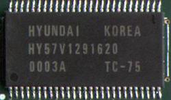 了四颗HY的内存颗粒,这样算来,这根内存使用的是128MB兆位的内存