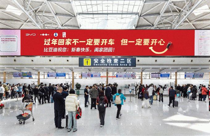 比亚迪新春广告亮相多地机场:过年回家一定要开心
