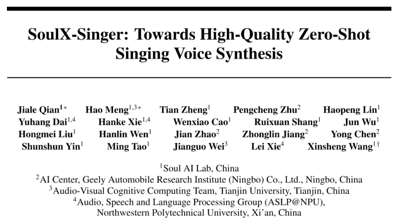 工业级稳定可用、零样本歌声合成,Soul App 联合吉利汽车研究院人工智能中心(AIC)、天津大学及西北工业大学开源SoulX-Singer