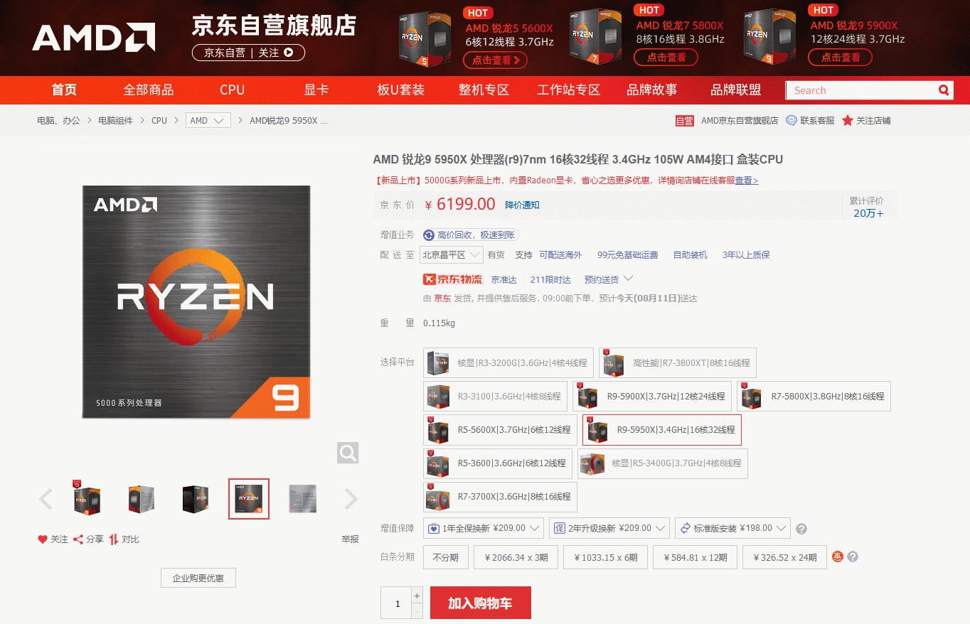 AMD锐龙9 5950X处理器在京东商城自营旗舰店的售价为6199元,同时享受白条分6期免息的优惠活动,让您在实现攒机梦想的第一步也不会因为资金倍感压力。目前消费级市场的处理器产品,AMD锐龙9 5950X就是一骑绝尘,想要拥有一台综合性能最好整机的玩家朋友就赶快下单吧!