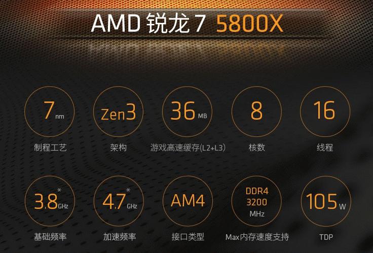 AMD锐龙7 5800X处理器采用了7nm制程工艺以及全新的Zen3架构,搭配8核心16线程的高规格配置和高达4.7GHz的高规格频率以及36MB的超大游戏缓存,得益于先进的工艺架构搭配强大单核性能,让可以轻松运行当下主流游戏,获得超高帧数。
