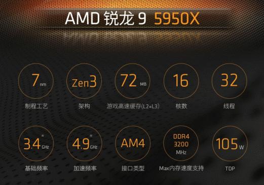 AMD锐龙9 5950X处理器采用了业界领先7nm制程工艺以及全新的Zen3架构,搭配16核心32线程的高规格配置和高达4.9GHz的高规格频率以及72MB的超大游戏缓存,得益于先进的工艺架构搭配强大单核性能和多核性能,让锐龙9 5950X可以轻松应对各项生产力软件和主流3A网络游戏,表现全能。