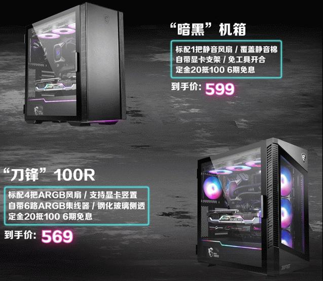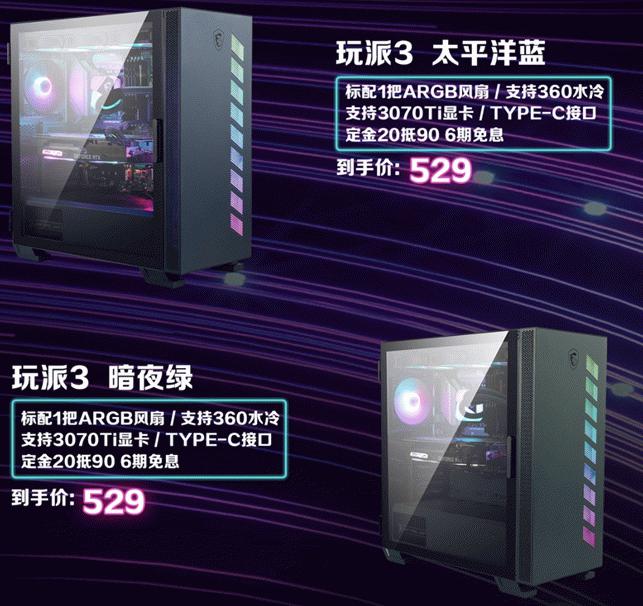 机箱包括暗黑、刀锋100R、刀锋100P、玩派3太平洋蓝/暗夜绿。目前,在京东平台首轮发售还有促销活动