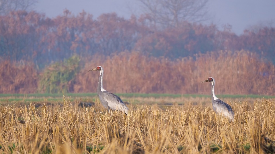 拍摄白枕鹤时可以通过变焦构图实现场景版和特写版。