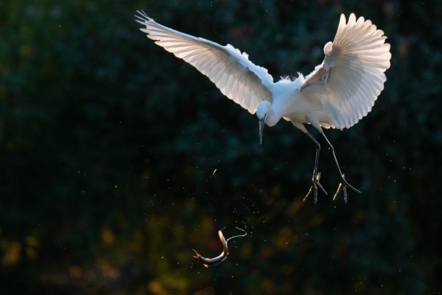 抓拍白鹭漏过到嘴的泥鳅,这个对焦速度也是杠杠的,非常的棒。