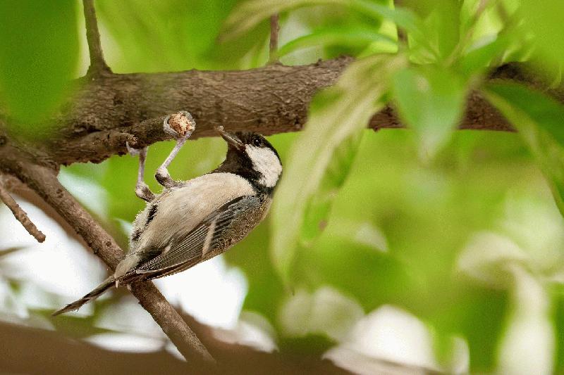 一只远东山雀在树干里啄出了虫子,对这样动作速度非常快、体型很小巧的鸟,G9的连拍速度是保证定格画面的关键因素。