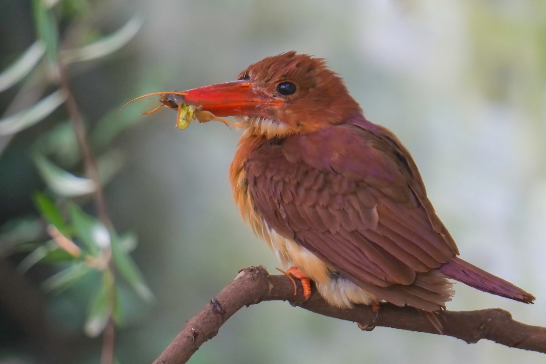 对于暗光环境下的赤翡翠,简直就是黑黑的一片,我用最大光圈,加上ISO800,1/60s拍下了这张照片,G9的宽容度还可以,我通过后期总算能够保证画面的干净度,并使得鸟眼还是比较明亮的。