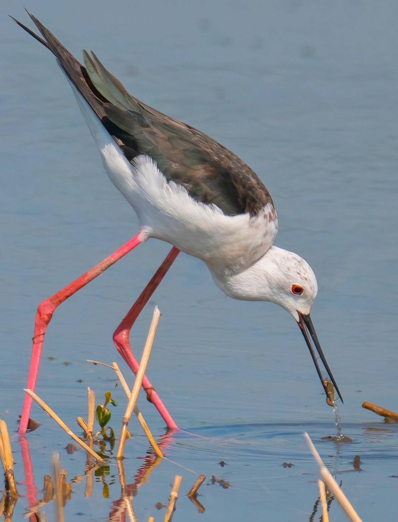 一只黑翅长脚鹬在湿地里捕捉水中的昆虫,无论对焦、追焦、连拍及画质,我都非常满意。