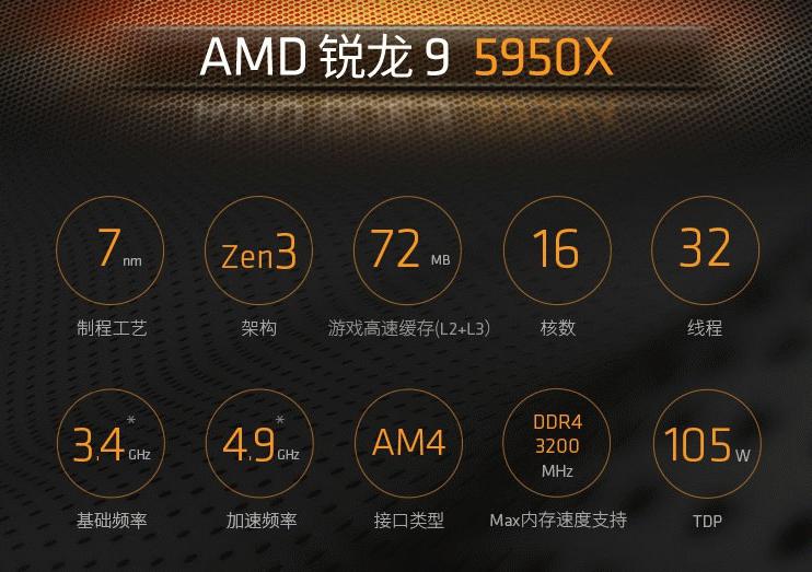 说到天花板,当然是因为AMD锐龙9 5950X处理器在规格配置上就做到了无人能敌,业界领先的7nm制程工艺和全新的Zen3架构,搭配16核心32线程的高规格配置和高达4.9GHz的高规格频率以及72MB的超大游戏缓存,得益于先进的工艺架构搭配强大单核性能和多核性能,让锐龙9 5950X可以轻松应对各项生产力软件和主流3A网络游戏,真正做到了全能。