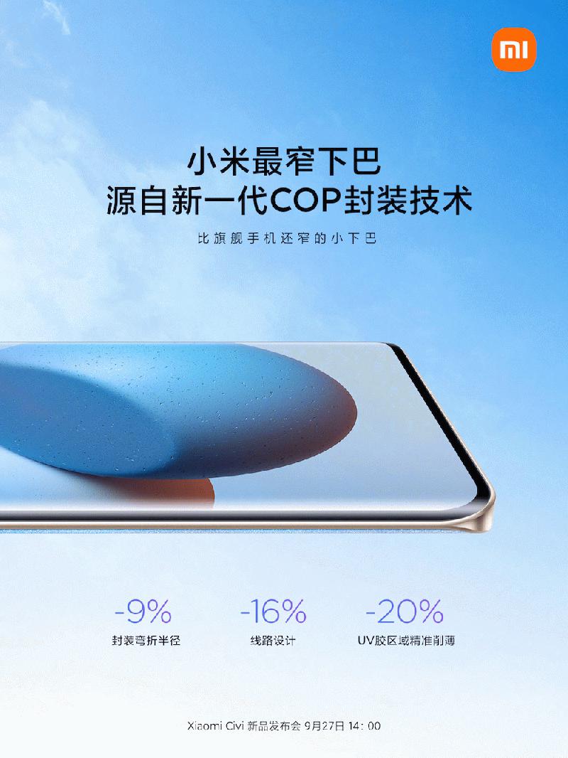 小米Civi用上新一代COP封装技术 小米最窄下巴 ......