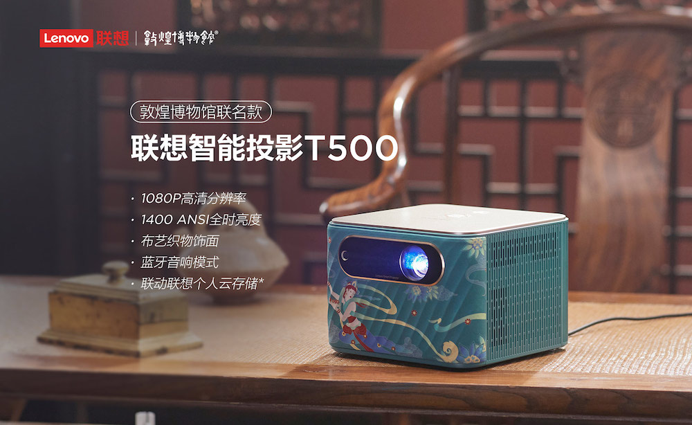 联想再度联手敦煌博物馆,以“蔚为大观,投射美好”为主题,为用户带来了联想智能投影仪T500及敦煌博物馆联名产品。