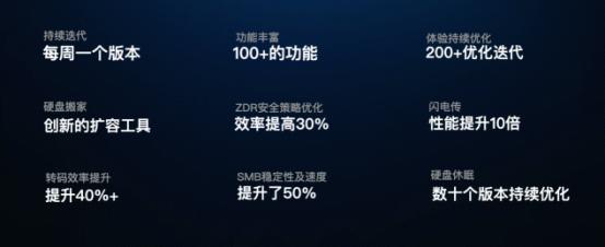 过去365天,ZOS系统迭代了50个版本,上线了超过40个功能,针对苹果、安卓手机、电视机、windows和苹果电脑客户端、微信小程序以及浏览器 7个终端,迭代了超过400个APP版本。袁斌强调,极空间研发团队真正做到了每周更新,持续迭代升级都是为了给用户最好的体验。
