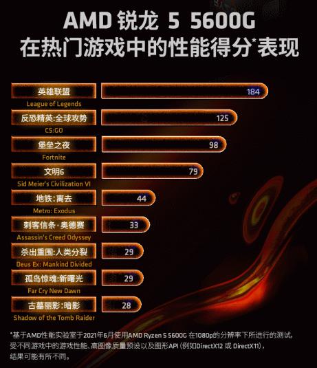 AMD锐龙5 5600G处理器优秀的处理器性能和图形性能让让游戏启动,运行都顺畅无忧,在保持流畅运行的同时还可以拥有更多的后台软件体验。AMD锐龙5 5600G在英雄联盟、CS GO等多款热门网游中拥有非常不错的帧数,即使是那些在办公之余打打竞技网游的用户来说,也能收获极致的游戏体验。