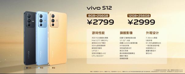 全新一代先锋影像旗舰vivo S12 Pro,8GB+256GB版本,3399元,12GB+256GB版本,3699元;vivo S12,8GB+256GB版本,2799元,12GB+256GB版本,2999元。以上所有版本将于发布会之后在vivo官网、官方体验店、京东、天猫、苏宁,以及线下各类合作门店开启预售,12月30日正式开售。