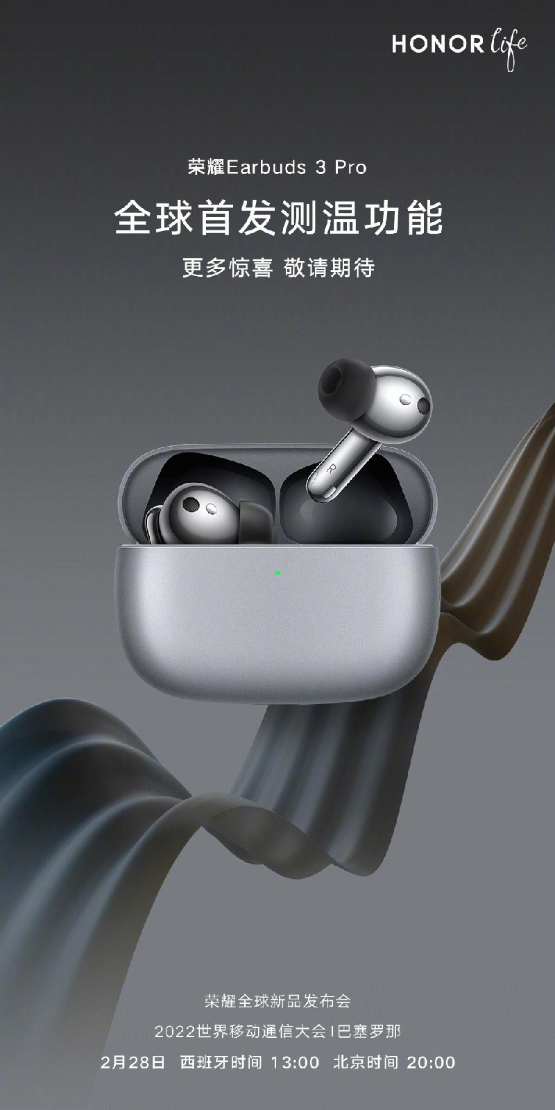 全球首款测温真无线耳机 荣耀耳机Earbuds 3 Pro官宣 ......