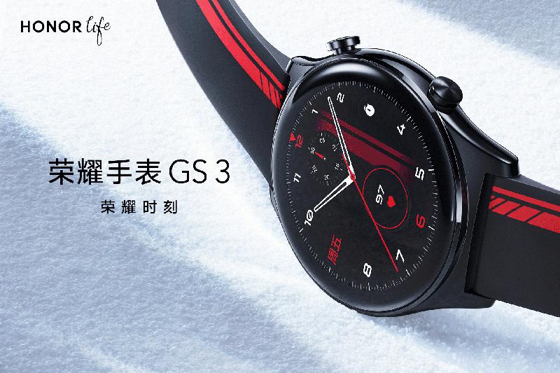 2月18日,荣耀与国家短道速滑队联名的荣耀手表GS 3「荣耀时刻」开启预售。这款产品灵感来源于中国短道速滑国家队运动员的冲线瞬间,"速度与激情碰撞,智慧和技巧较量,冰雪传奇,燃动神州"。它采用了红黑相间的外观,代表了竞技力量,表盘结合计时器元素,象征着超越与挑战。配以线条感渐变表带,神秘与速度同在。荣耀手表GS 3表盘采用全新3D超曲面玻璃表盘设计,1.43"AMOLED触摸屏,拥有326PPI分辨率,还配备上百种主题表盘,首发荣耀感应心率表盘。搭载更低功耗的处理芯片,在典型模式下可具备14天的续航能力,同时配备了闪充功能,55分钟可从0%充到100%。搭载了软硬件结合的"8通道心率Al引擎",综合心率监测准确度达97%,支持全天候血氧动态追踪、低血氧振动提醒,心率、睡眠、压力等24小时监测。拥有双频五大卫星导航系统,支持100+种运动模式、常用日程管理、短信拒听和来电快捷回复、自动识别切换300多个城市的交通和门禁卡、手表导航等功能。此外,内置丰富软件和支持第三方软件下载,包括百度地图、高德地图、航旅纵横、薄荷运动等应用,同时支持蓝牙通话、事务提醒、身体状态、NFC智能选卡、身份认证等各类体验。