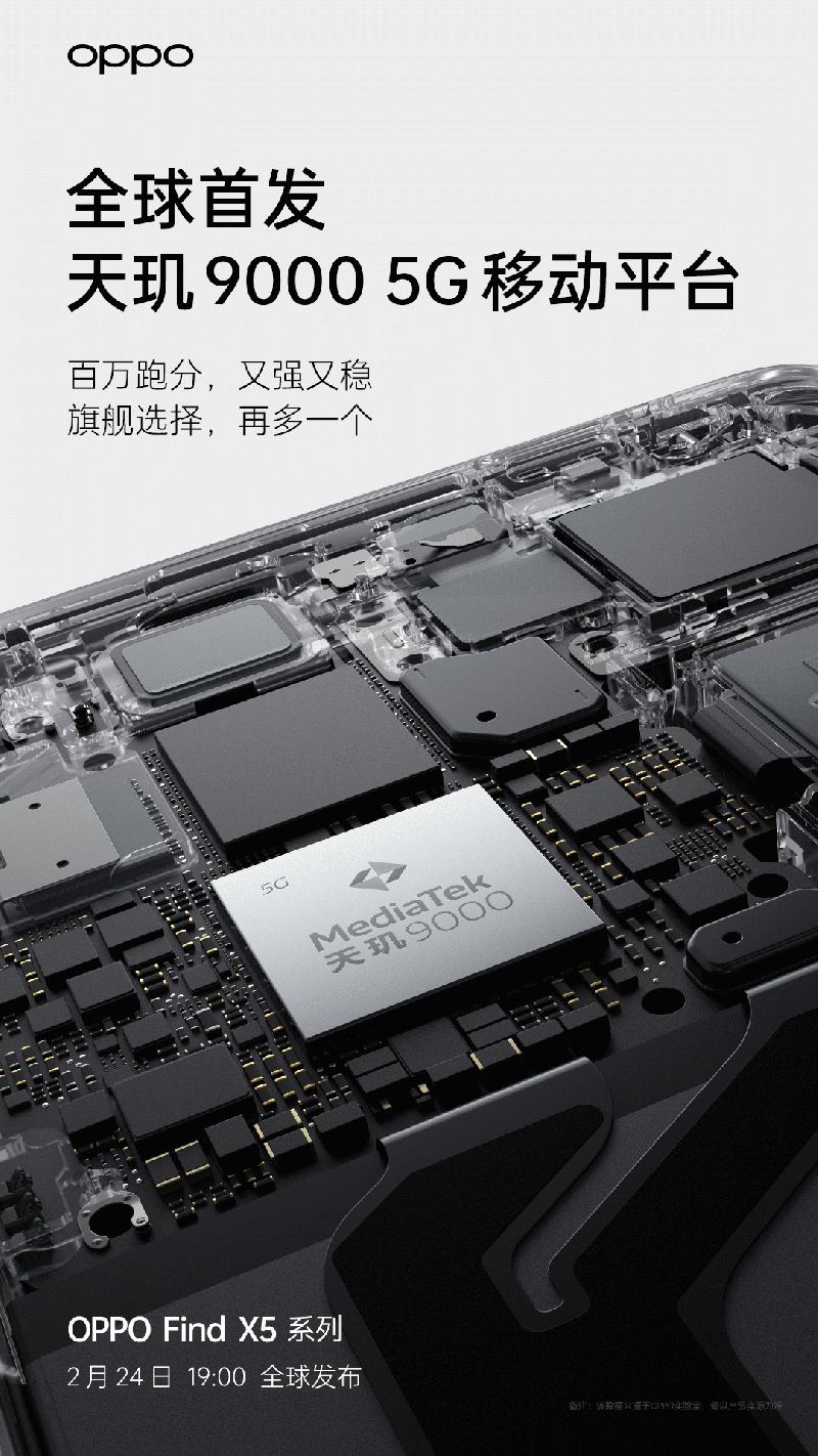 OPPO Find X5系列将全球首发天玑9000和马里亚纳MariSilicon X