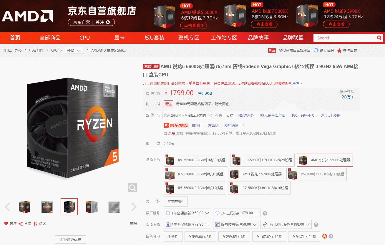AMD锐龙5 5600G处理器京东购买链接: https://item.jd.com/100012989127.html