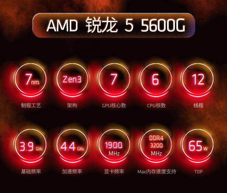 AMD锐龙5 5600G处理器采用了业界领先的7nm制程工艺以及全新的Zen3架构,搭配6核心12线程的高规格配置和高达4.4GHz的高规格CPU频率以及1900Mhz的显卡频率,内置的Radeon Vega显卡性能出众。得益于先进的工艺架构搭配强大的图形能力,锐龙5 5600G处理器拥有强大的综合实力,办公游戏样样精通。