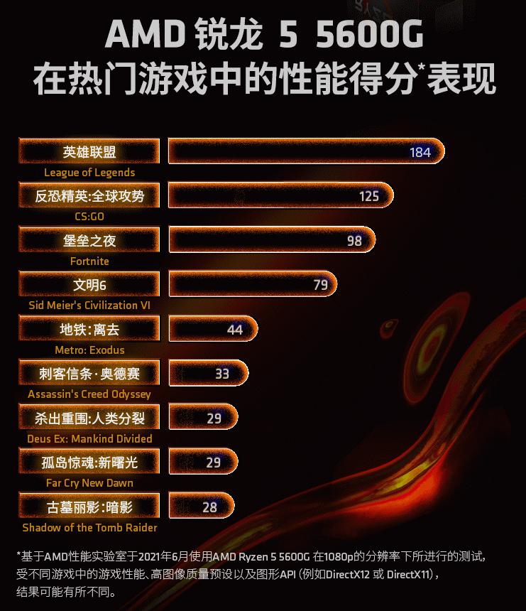 AMD锐龙5 5600G处理器优秀的处理器性能和图形性能让让游戏启动,运行都顺畅无忧,在保持流畅运行的同时还可以拥有更多的后台软件体验。AMD锐龙5 5600G在英雄联盟、CS GO等多款热门网游中拥有非常不错的帧数,对于主玩竞技网游的学生朋友来说,完全可以满足这些娱乐需求。不仅如此,锐龙5 5600G功耗只有65瓦,非常适合宿舍这种公共环境使用。