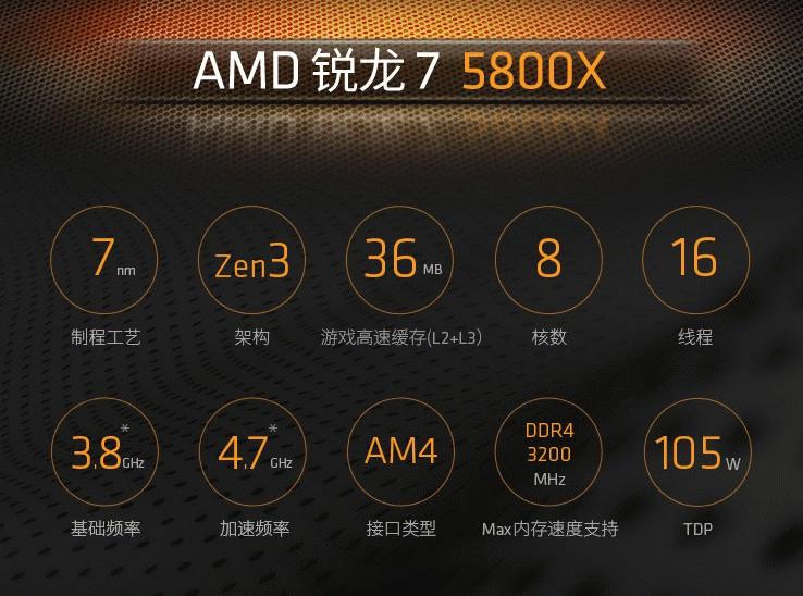 AMD锐龙7 5800X处理器采用了业界领先的7nm制程工艺以及全新的Zen3架构,搭配8核心16线程的高规格配置和高达4.7GHz的高规格频率以及36MB的超大游戏缓存,得益于先进的工艺架构搭配强大单核性能,可以轻松运行当下主流游戏,获得超高帧数。