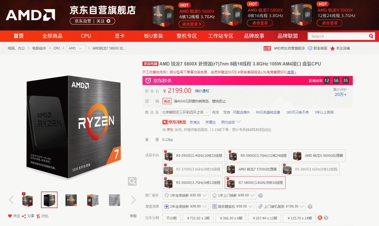 AMD锐龙7 5800X京东购买链接: https://item.jd.com/100009085723.html