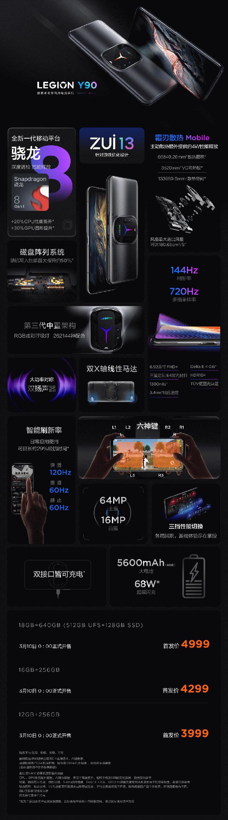 PC级散热及SSD 联想拯救者Y90电竞手机开卖 ......