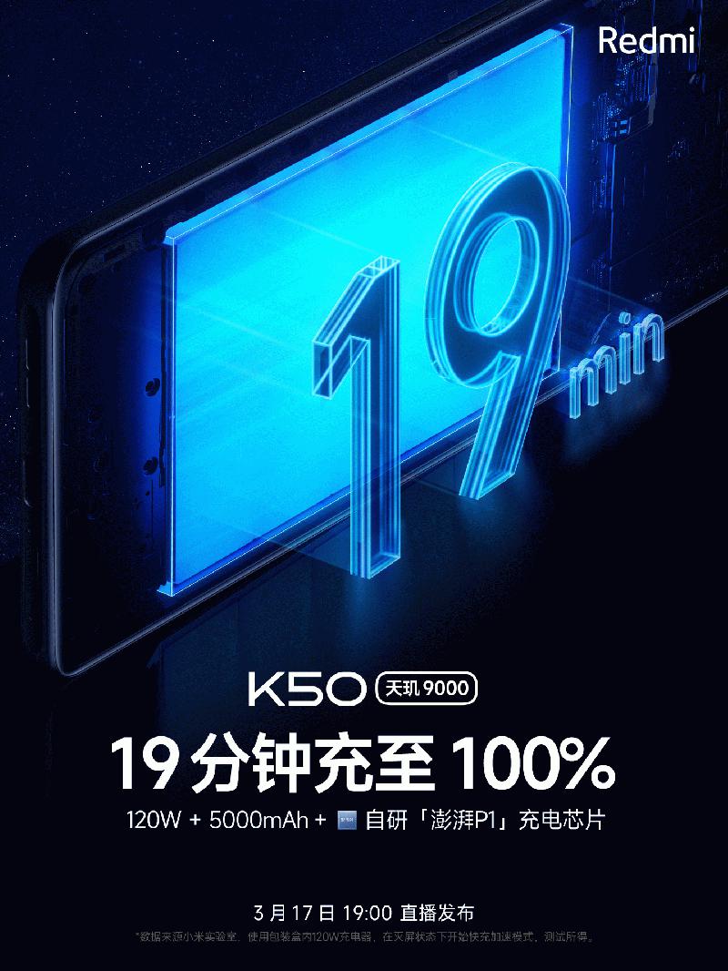 3月15日,Redmi公布了K50系列的又一重要参数:120W神仙秒充+5000mAh大容量电池。搭载自研澎湃P1充电芯片以及更先进的4:1电荷泵,充电实测:充至100%仅需19分钟。核心配置上,Redmi K50系列采用2K AMOLED柔性直屏,供应商为三星,搭载联发科天玑9000旗舰处理器,最高配备12GB内存、512GB存储,后置主摄为一亿像素(108MP),支持Wi-Fi 6。