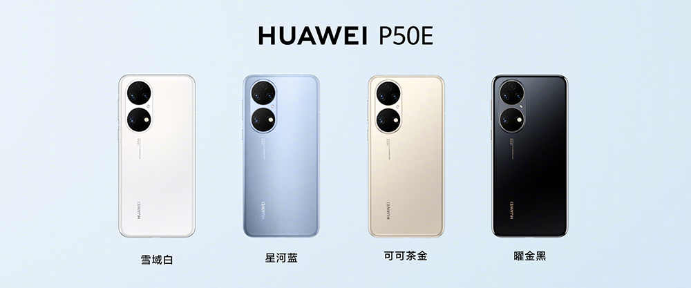 华为P50E采用类似P50的经典纯平直屏设计,机身圆润,支持IP68级防水防尘,提供雪域白、曜金黑、星河蓝、可可茶金四种配色风格。采用6.5英寸OLED,分辨率FHD+ 2700×1224,屏幕色彩10.7亿色,P3广色域。最高支持90Hz刷新率, 1440Hz高频PWM调光,300Hz触控采样率。触摸屏多点触控触摸屏,最多支持10点触控。搭载骁龙778G 4G CPU。4100mAh电池,支持66W超级快充。拍照方面,P50E配置超感光原色双影像单元,其中主摄是5000万像素超感光原色镜头,RYYB传感器,进光量提升40%,23mm灯效焦距,F1.8光圈。搭配1300万像素超广角镜头(16mm/F2.2)、1200万像素潜望式长焦镜头(OIS 5倍光变/125mm/F3.4),还有通道多光谱传感器、激光对焦传感器,支持16-1350mm 80倍变焦范围。