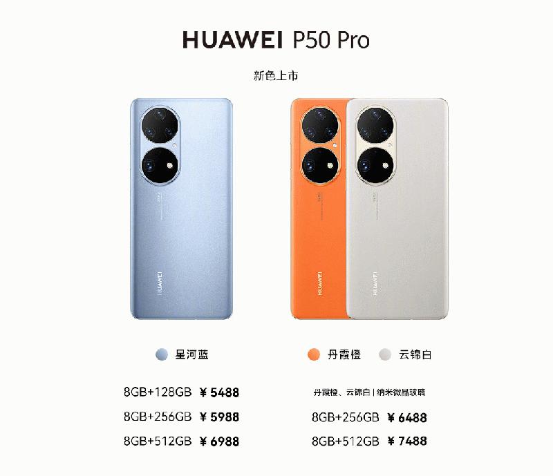 华为P50 Pro三款全新配色首销 起售价5488元 ......