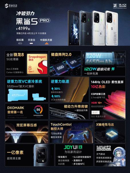 【小熊在线讯】今日“冲破引力”黑鲨新品发布会在北京正式召开,全新黑鲨5系列游戏手机正式发布,共有黑鲨5、黑鲨5 Pro、黑鲨5 RS三款不同产品供玩家选择。其中黑鲨5 与黑鲨5 Pro还与中国航天神舟传媒合作推出了中国航天定制版供玩家选择。