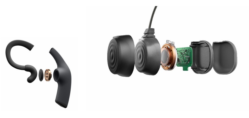 区别于常见的骨传导耳机,飞利浦GO系列骨传导耳机采用了多项创新科技。在佩戴方式上,A8606创新地使用真无线佩戴方式,运动时避免产生“听诊器”效应;在单元结构上,A6606的骨传导振动单元采用圈铁耦合技术,让音域表现更宽广;A8606和A6606振动单元均使用了双弹片式结构,声音不会失真,传导效率更高。骨传导独特的声音传导方式通过人骨作为传声介质,不会影响耳膜,直达听觉神经;独特的开放式听音方式也不会影响他人,在办公环境内欣赏音乐也可以和别人沟通交流,运动时随时感知周围的声音。双麦克风通话技术,确保通话的清晰度。