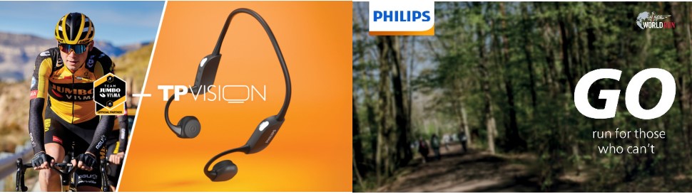 自飞利浦GO系列骨传导耳机上市以来,2021年成为世界顶级公路自行车队,荷兰的Team Jumbo Visma(珍宝-威斯玛)车队官方合作伙伴。2022年成为Wings for life World-Run跑团项目全球官方合作伙伴。