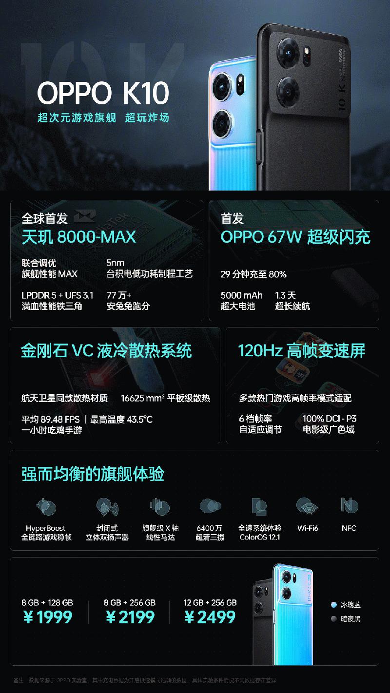 全球首发天玑8000-MAX OPPO K10发布 67W闪充+LCD屏 ......