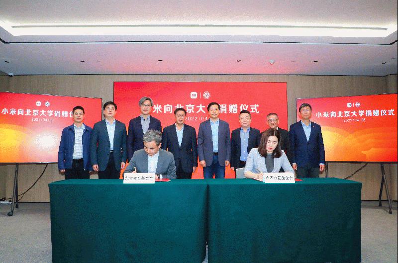 4月26日,“北京大学小米创新发展基金”捐赠签约仪式在北京小米科技园举行。本次捐赠由小米公益基金会发起,旨在推动北京大学在集成电路、心理与认知等领域的前沿研究和科技创新,培养一批在相关学术研究领域引领未来的高水平、创造性、复合型人才,支持北京大学的全面发展。