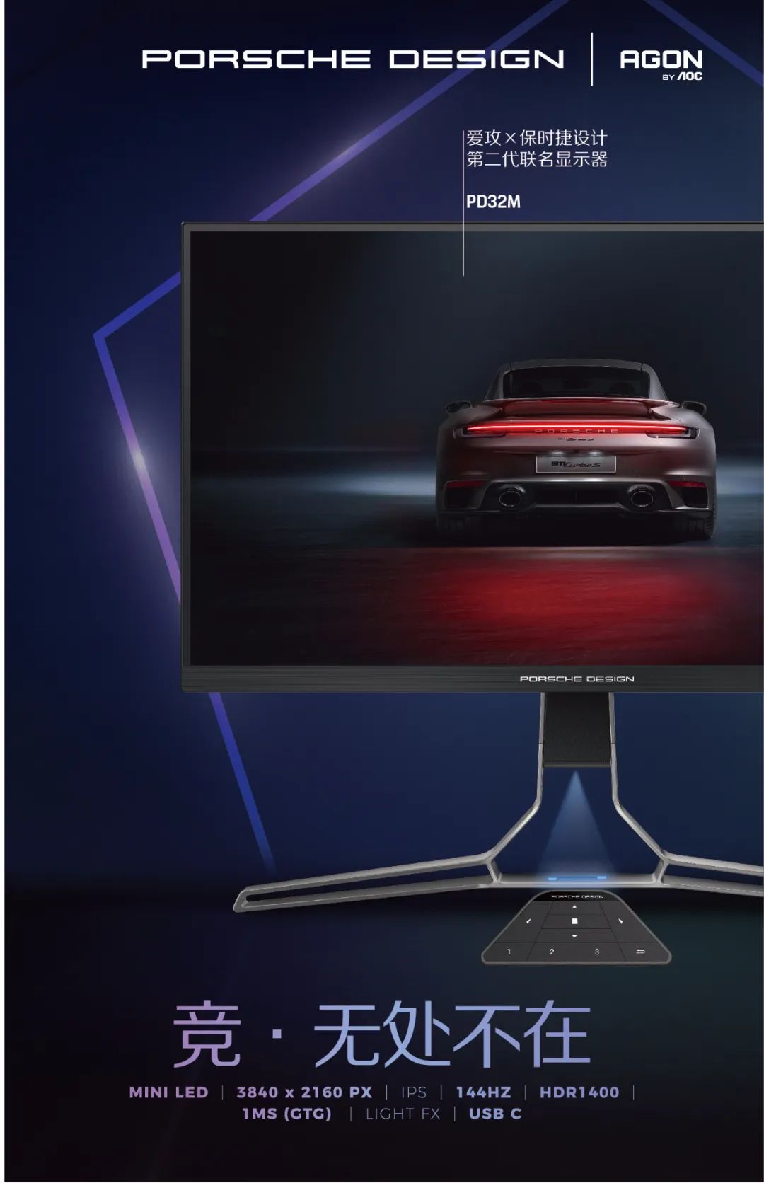 电竞超跑 全新升级 AGON爱攻×保时捷设计第二代联名显示器PD32M震撼上市