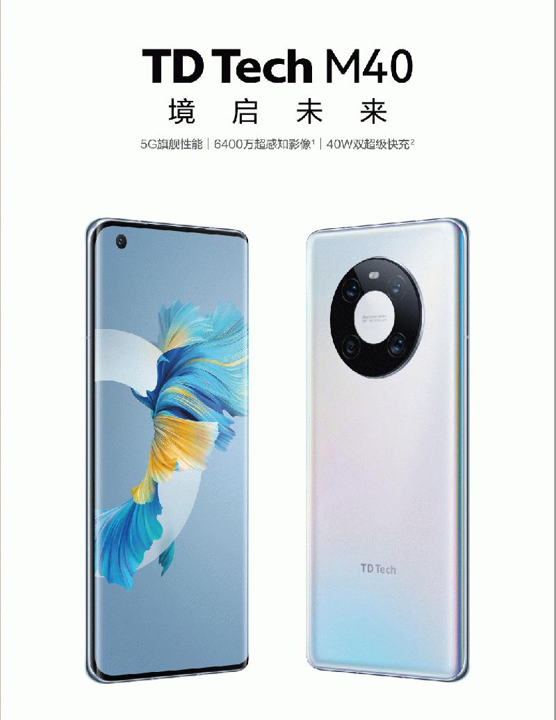 TD Tech M40采用标志性的星环设计,6.5英寸OLED屏,机身仅有8.8mm厚、轻至188g。搭载5G SoC,5G+5G双卡待机,可实现双卡流量智能切换。内置4200mAh电池,40W有线超级快充+40W无线超级快充,无线反向充电可为无线耳机、手机、手表、手环等应急充电。影像方面,搭载全新的超感知影像系统,6400万像素超感知广角摄像头+1600万像素超广角摄像头。支持AI视频字幕翻译功能,能够面对面语音翻译,浏览器和邮件全局翻译以及拍照、按压全屏翻译等。