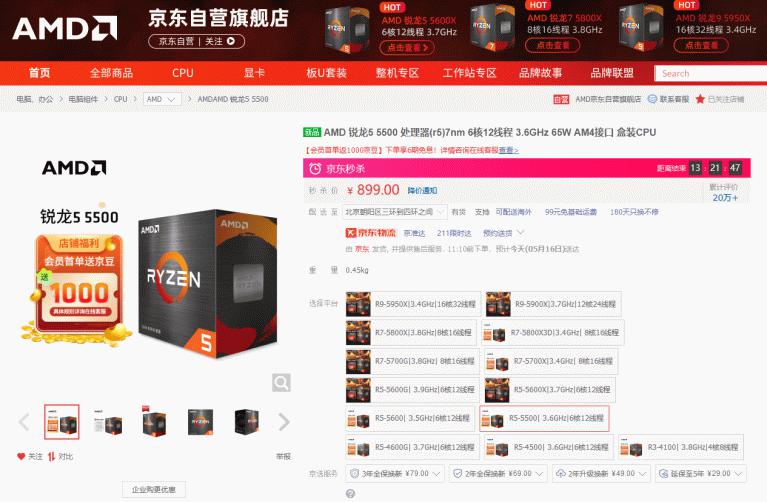 AMD锐龙5 5500京东购买链接: