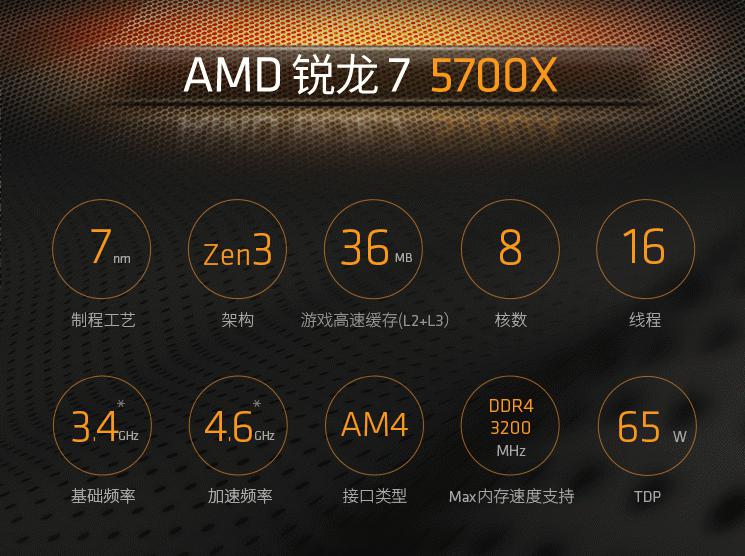 下面详细来了解一下AMD 锐龙7 5700X处理器,它采用了业界领先的7nm制程工艺以及全新的Zen3架构,搭配8核心16线程的高规格配置和高达4.6GHz的高规格频率以及36MB的超大游戏缓存,得益于先进的工艺架构搭配强大单核性能,可以轻松运行当下主流游戏,获得超高帧数。