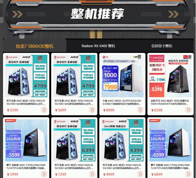 预热活动中同样上架了多款使用AMD锐龙处理器和AMD Radeon显卡的整机产品,它们来自各大知名装机品牌商,每一台都有独特的魅力,朋友们可以根据配置和外观进行详细比对选购。