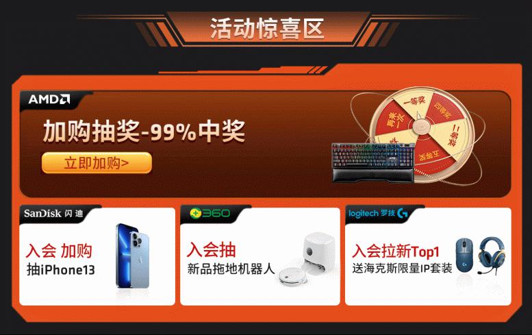 除了成为AMD天猫官方旗舰店会员之外,闪迪、360和罗技的天猫官方旗舰店也为大家准备了各种入会好礼。闪迪入会可以获得满199-10优惠券,加购还能抽取iphone13;360入会直享5元无门槛优惠券,抽取新品拖地机器人;罗技入会送30元海克斯鼠标优惠券,拉新人入会Top1直接送海克斯限量IP套装。活动福利多多,AMD的粉丝朋友们都要多多关注这些联合品牌店哦。