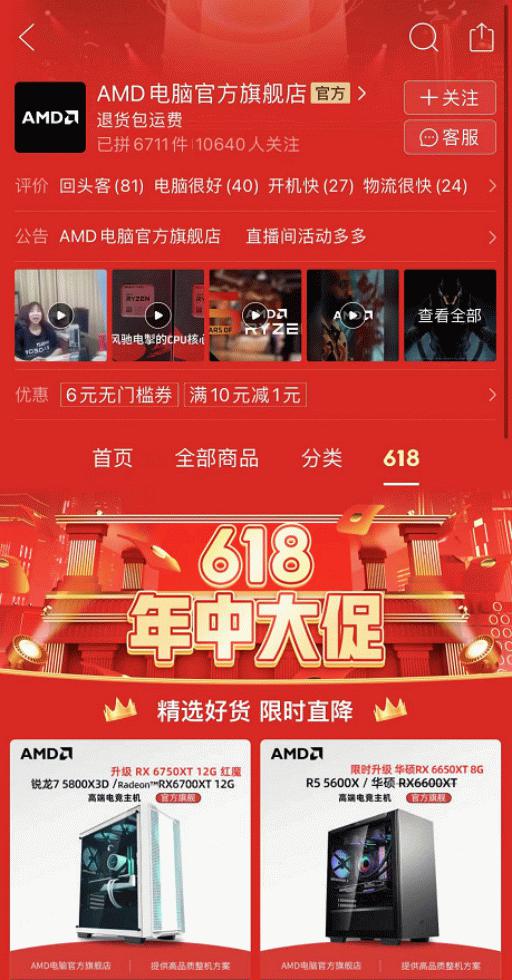 联合宠粉 百亿补贴 AMD旗舰店618活动火热进行中