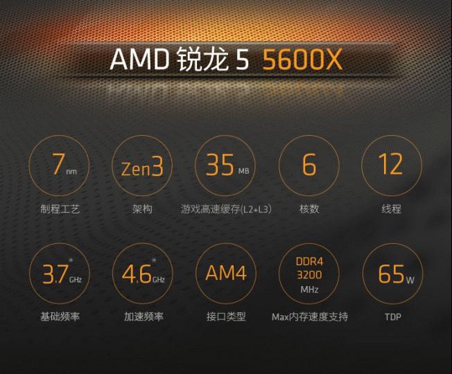 AMD 锐龙5 5600X处理器是广大游戏玩家熟知的一款经典锐龙5000处理器了,它还被广大IT媒体们称为性价比最高的游戏处理器并冠以“网游之王”的封号。它采用了全新的Zen3架构,7nm制程工艺,6核心12线程的配置以及高达4.6GHz的Max主频和35MB的高速游戏缓存,在多家媒体的实测中,AMD 锐龙5 5600X在英雄联盟、CS GO等多款热门网游中表现强势,瞬间将游戏体验提升了好几个档次。