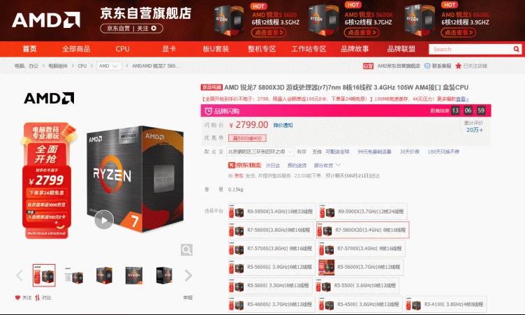 AMD 锐龙7 5800X3D处理器京东购买链接:
