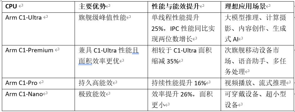 全新 Arm Lumex 平台包含以下核心组件: