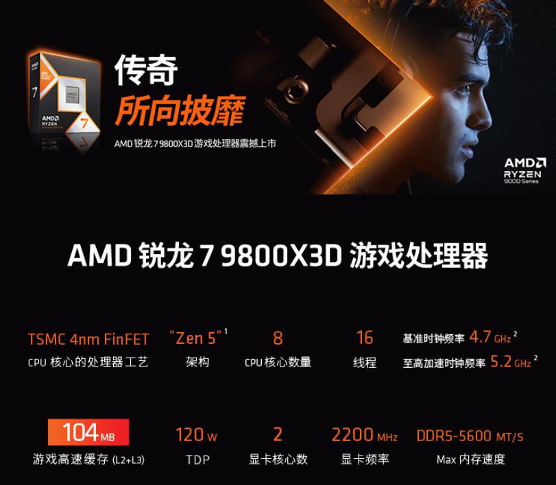 攒机季首选游戏神U AMD锐龙7 9800X3D好价推荐