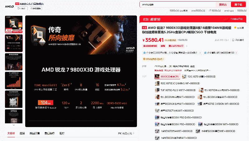 【小熊在线】今年京东商城双十一预热阶段开启的非常早,这对于近期准备攒机的DIY玩家来说无疑是个好消息,这样在近一段时间来给自己的电脑升级焕新都是最合适的时期。相信对于游戏发烧友来说,等的就是大促,今天就为大家来推荐一款打造极致游戏性能必备的一款处理器,它就是来自AMD(超威)的锐龙9 9800X3D,相信这也是很多朋友们心中的标准答案了,这款游戏神U就是目前游戏性能天花板级别产品,想拥有极致游戏体验的朋友赶快来详细了解一下吧。