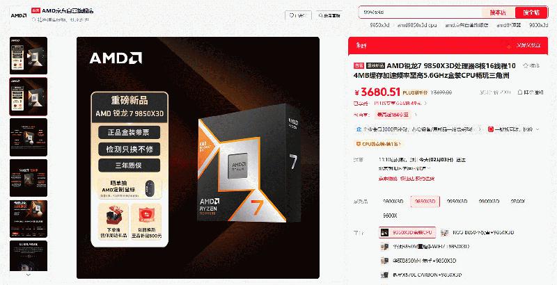 目前AMD 锐龙7 9850X3D处理器在AMD京东自营旗舰店的报价是3699元,成为京东PLUS会员只要3680.51元,成为AMD京东自营旗舰店会员还有前面介绍过的各种福利活动,首发期还有额外的晒单活动,而且新品的价格都非常稳定,所以趁着新品上市阶段直接购入是非常明智的选择。对于追求极致游戏体验的玩家们来说,这款全新的X3D处理器就是AMD送给大家的新年礼物。